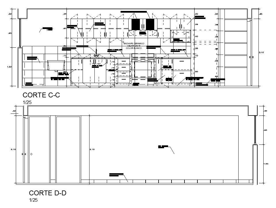The front section view of the 3x4m kitchen is given in this AutoCAD drawing model. Download now.