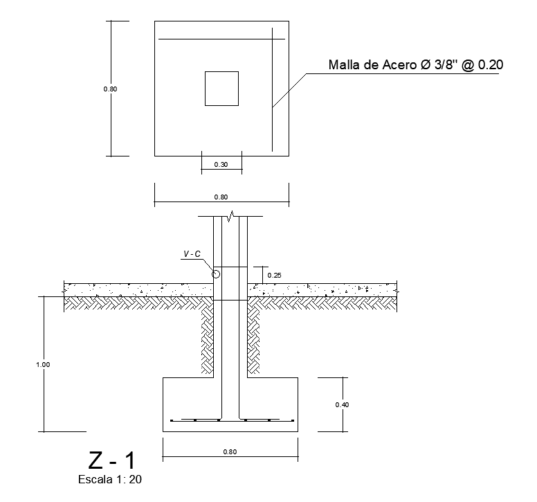 800x800mm foundation plan of the 12x30m court plan is given in this AutoCAD 2D drawing model. Download now.