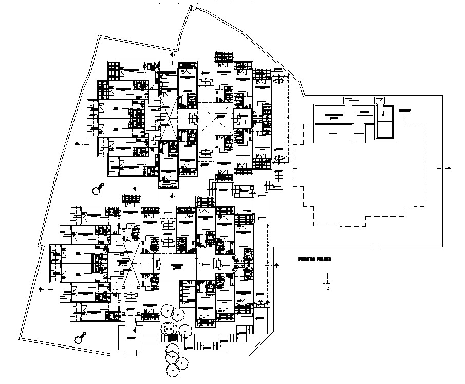 45x66m first floor hotel plan is given in this AutoCAD drawing model. Download now.