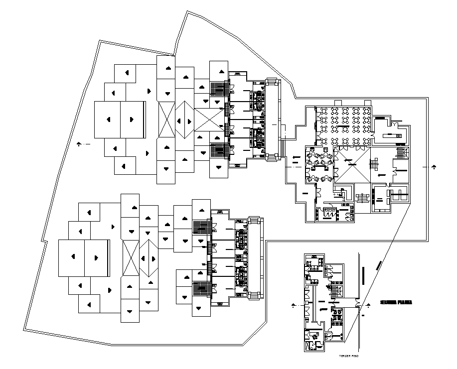 45x66m second floor hotel plan is given in this AutoCAD drawing model. Download now.