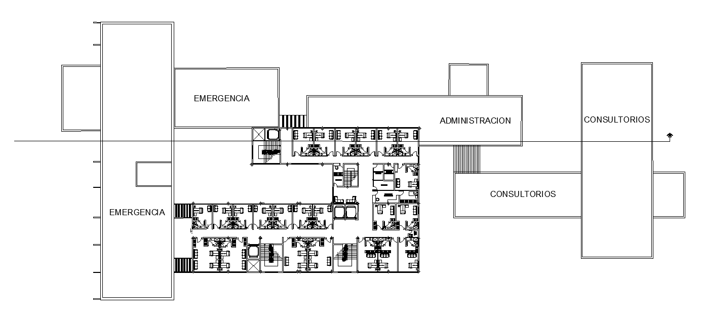 120x61m first floor hospital plan is given in this AutoCAD drawing model.  Download now.