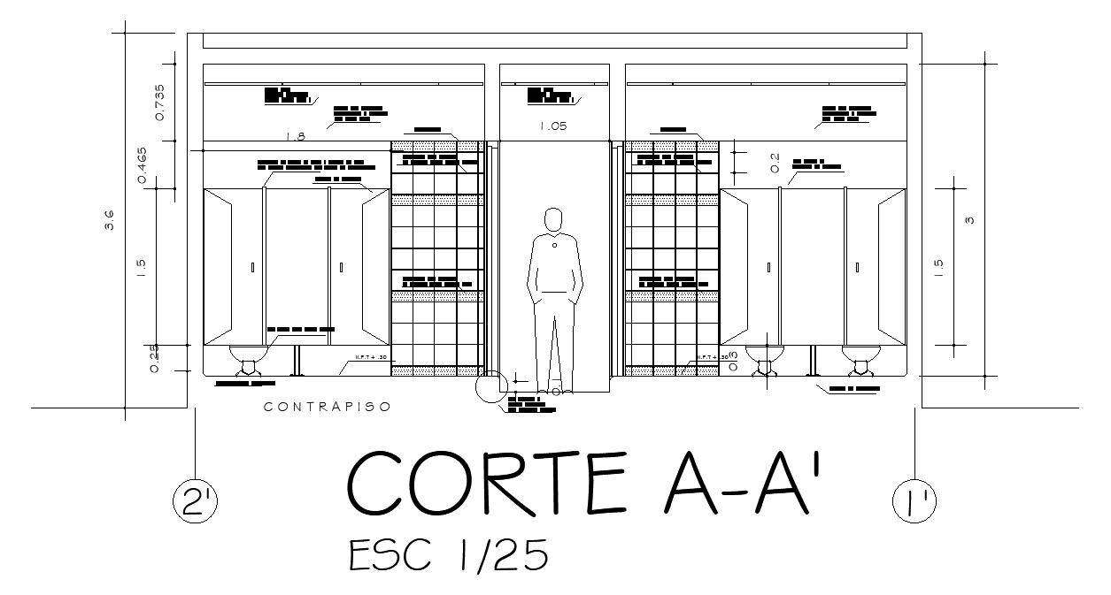 The left side section view of the 5x7m toilet building is given in this AutoCAD 2D model. Download now.