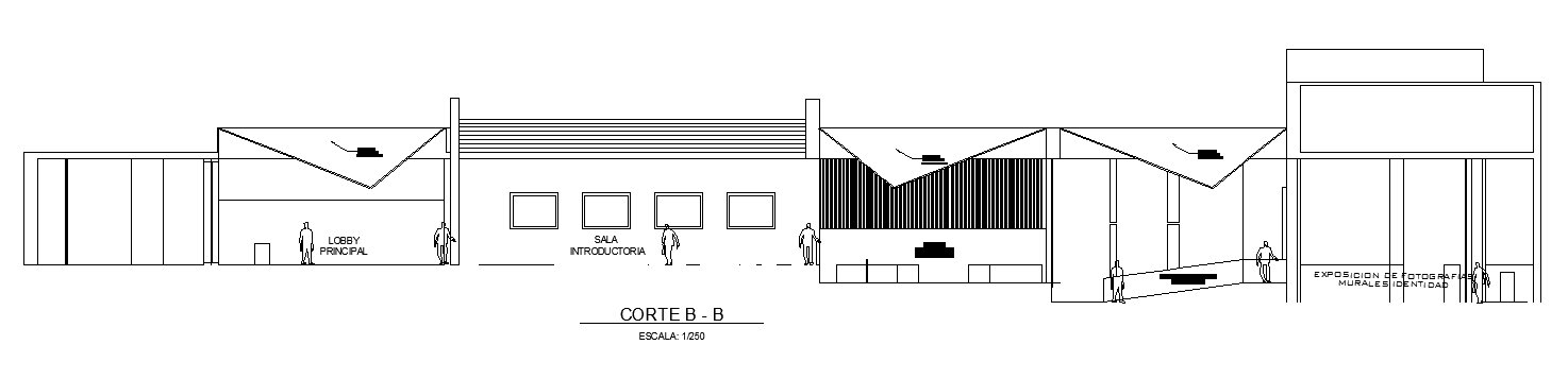 The back side section view of the 40x42m college building is given in this AutoCAD drawing model. Download now.
