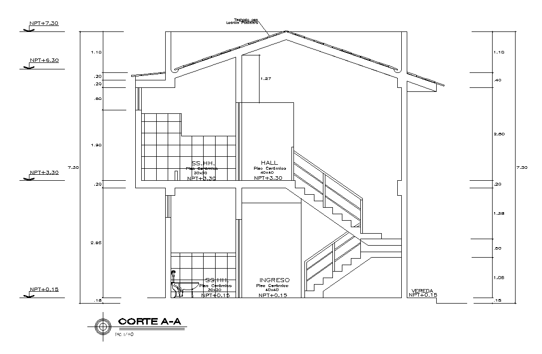 The front section view of the 7x17m office building is given in this AutoCAD drawing model. Download now.