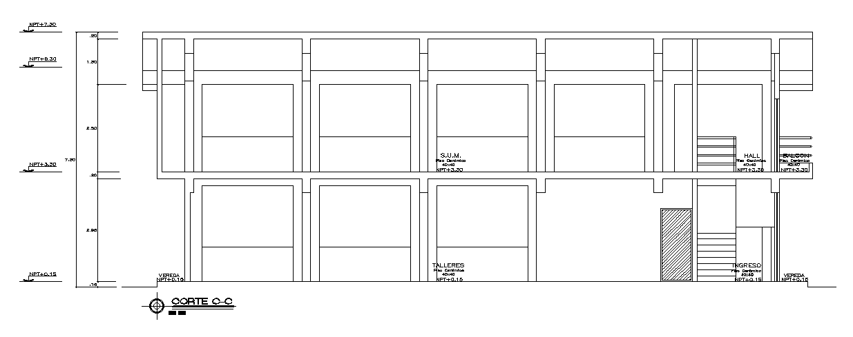 The left side section view of the 7x17m office building is given in this AutoCAD drawing model.