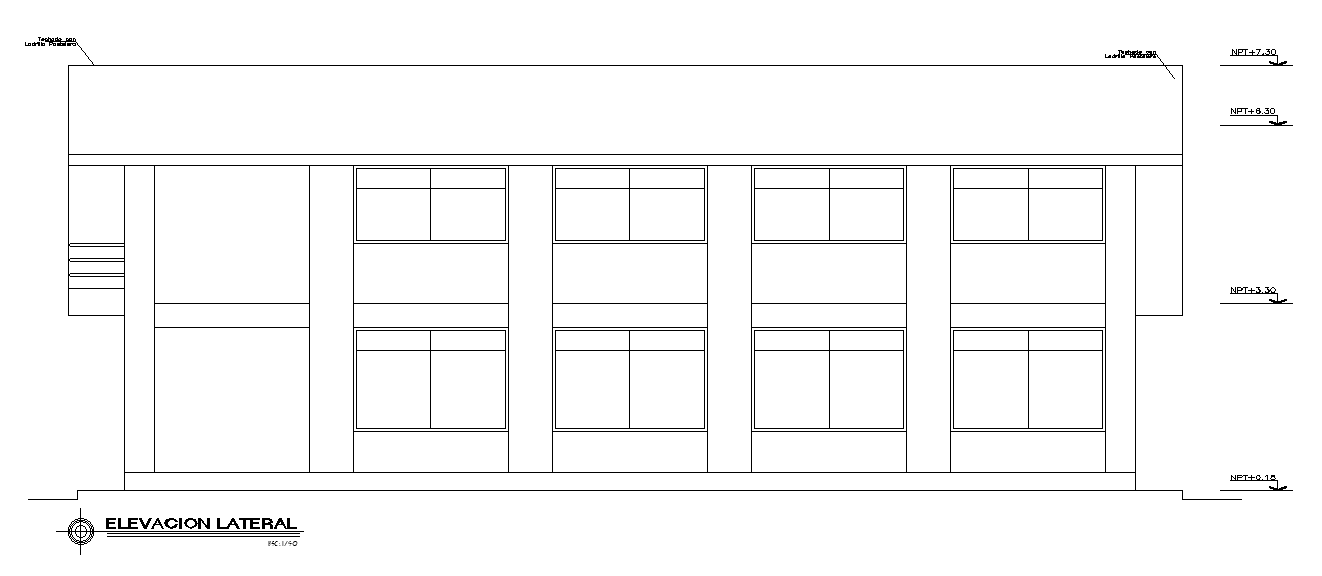 The left side elevation view of the 7x17m office building is given in this AutoCAD drawing model.