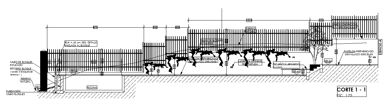 The front section view of the 35x11m swimming pool is given in this AutoCAD drawing model. Download now.
