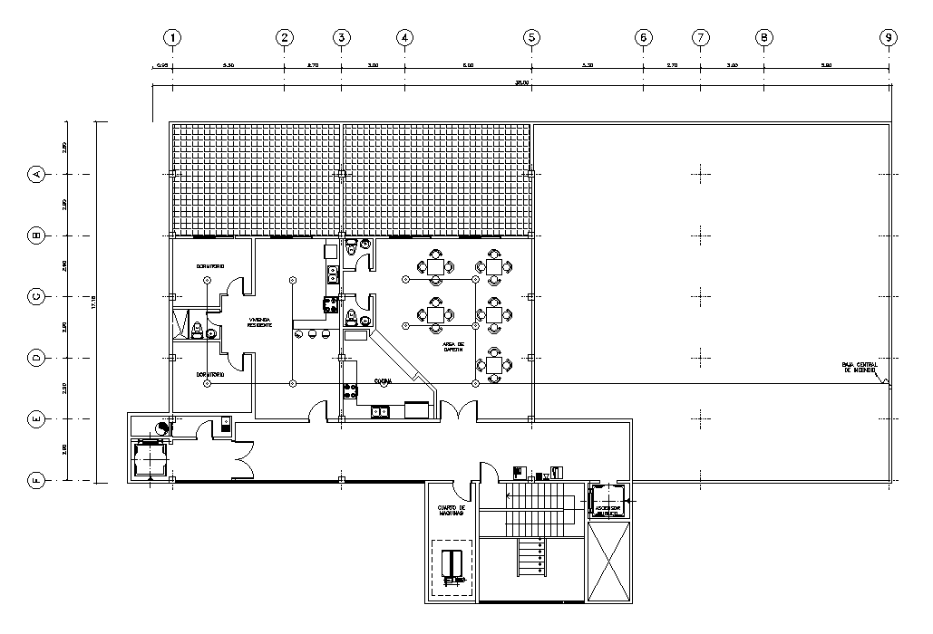 The light fitting detail of the 35x18m hospital third floor plan is given in this AutoCAD drawing model. This is G+ 2 hospital building. A kitchen, cafeteria, toilet, and store room are available. For more details download the AutoCAD drawing file. Thank you for downloading the AutoCAD drawing file and other CAD program files from our website.