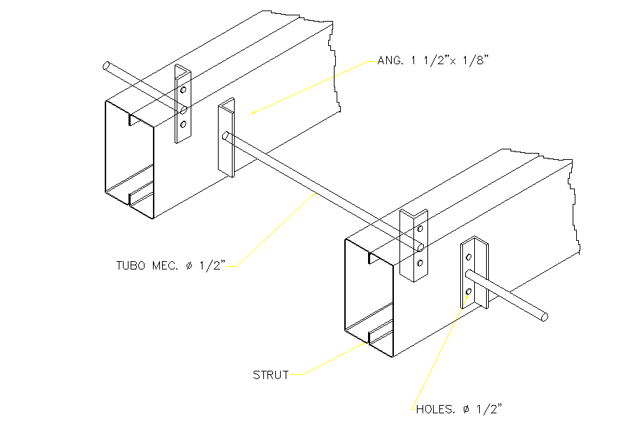 Detail roof metallic structure design. THE. 1 1/2 "x 1/8", HOLES. ∅ 1/2", TUBE MEC. ∅ 1/2 ".