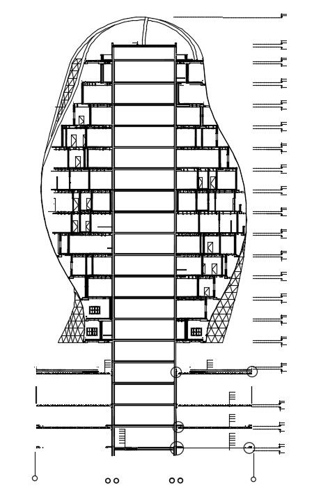 The front section view of the 38x38m small commercial building is given in this AutoCAD drawing model. This is G+ 13 commercial building. A layout of the plan is given on this model. The staircase is available on the center of the building. For more details download the AutoCAD drawing file. Thank you for downloading the AutoCAD drawing file and other CAD program files from our website.