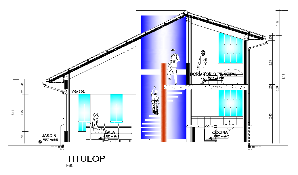 The left side section view of the 8x10m house design is given in this AutoCAD drawing model. Download now.