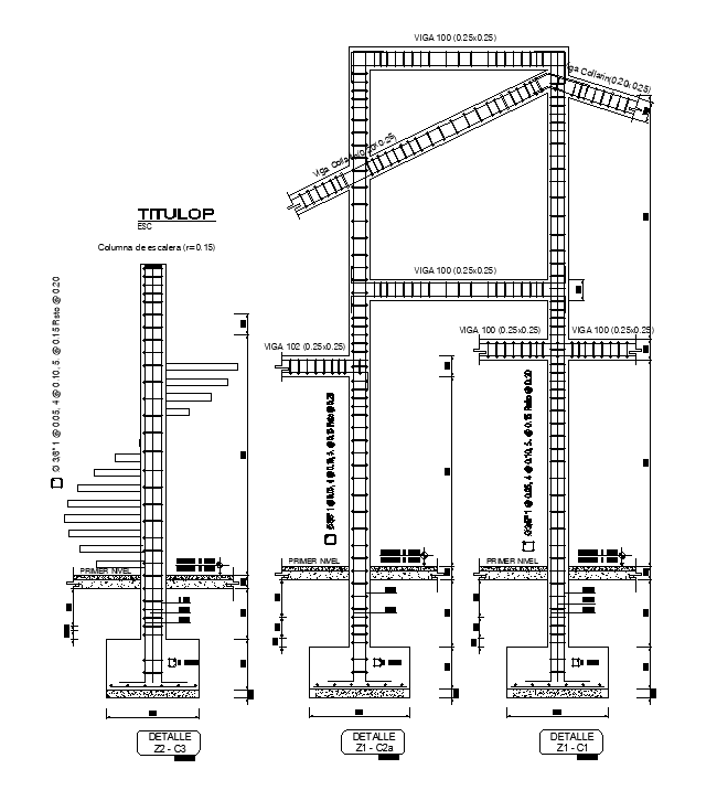 The right side 8x10m house plan of the column cum beam joint section views are given in this AutoCAD model. There are 3 types of columns that have given. The height of the building is 2.25m from the ground level to first floor level. Reinforcement details are mentioned on this column cum beam joint. For more details download the AutoCAD drawing file. Thank you for downloading the AutoCAD drawing file and other CAD program files from our website.