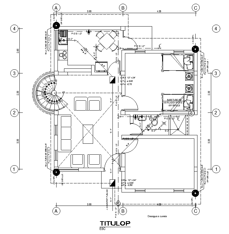 The plumbing layout of the 8x10m house design is given in this AutoCAD drawing model. Download now.
