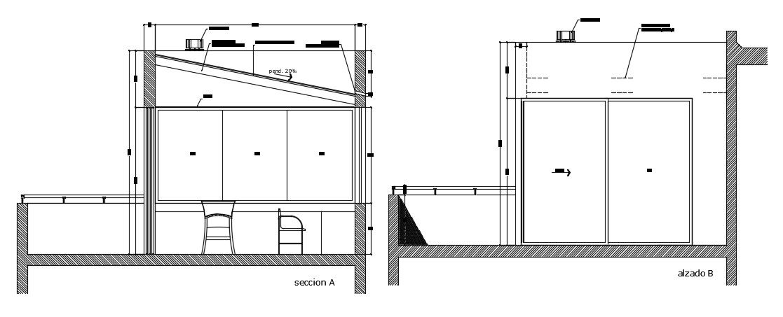 A section view of the terrace pergola is given in this AutoCAD file. Download now.