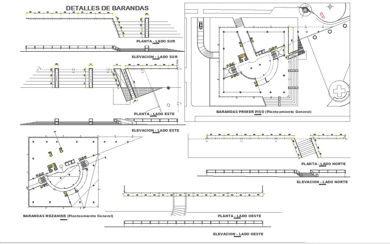 Handrails design and 2d detail include various type of sections, elevations and plan.