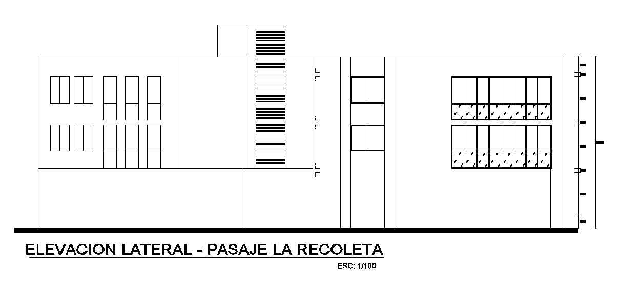 35x27m house building back side elevation view is given in this AutoCAD drawing model. Download now.