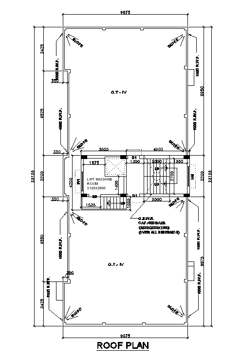 The Building roof plan is given in this cad file. There is slope detail and a lift machine room is also available. For more 3d or 2d cad drawings visit our website cadbull.com. Download this cad file now.