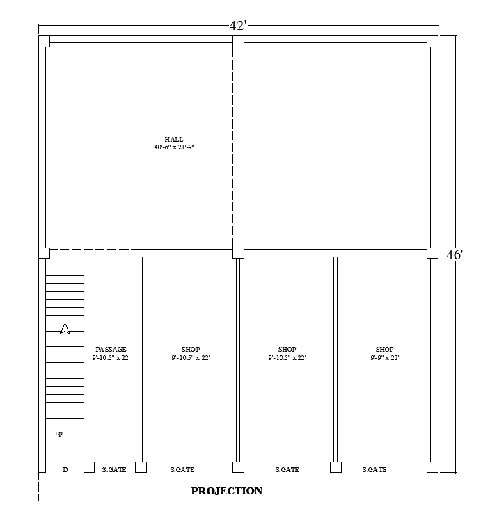 Modern building cad drawing is given in this cad file. There is a 2d floor plan is available. There are shops and a hall is available. Download this 2d cad file now.