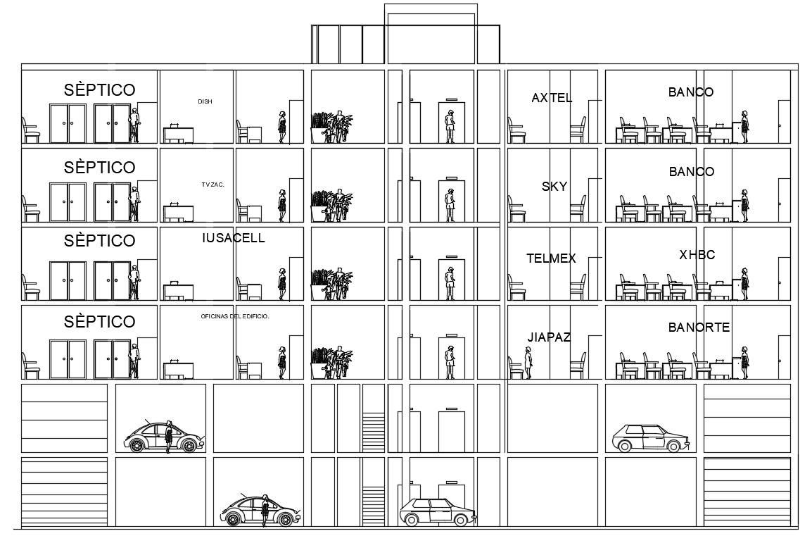 School building section drawing is given in this cad file. There is a g+3 building section is available. There are 2d basement details are also available. Download this cad file now.