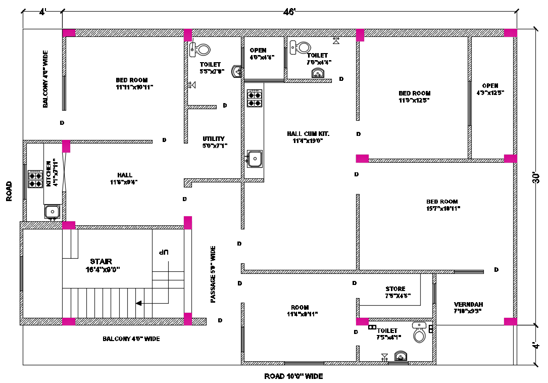 46'x30' cluster houses design cad drawing is given in this cad file. Download this cad file now.