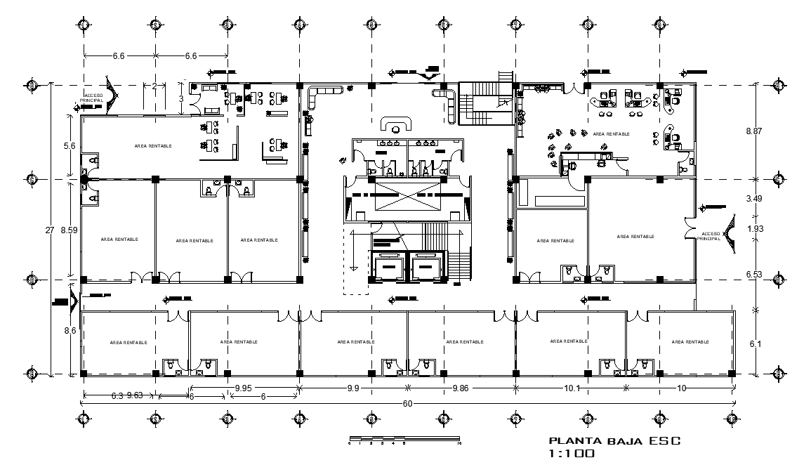 Modern commercial building master floor cad drawing is given in this cad file. Download this cad file now.
