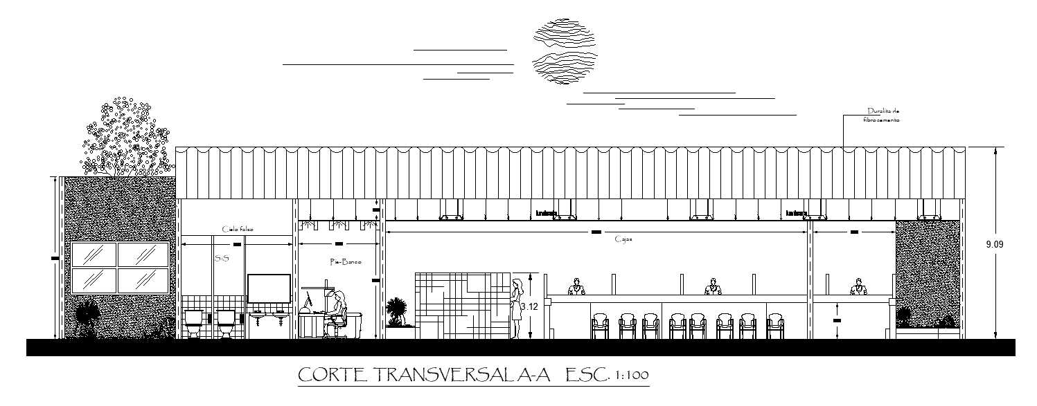 The corporate building section drawing is given in this cad file. Download this 2d cad file now.
