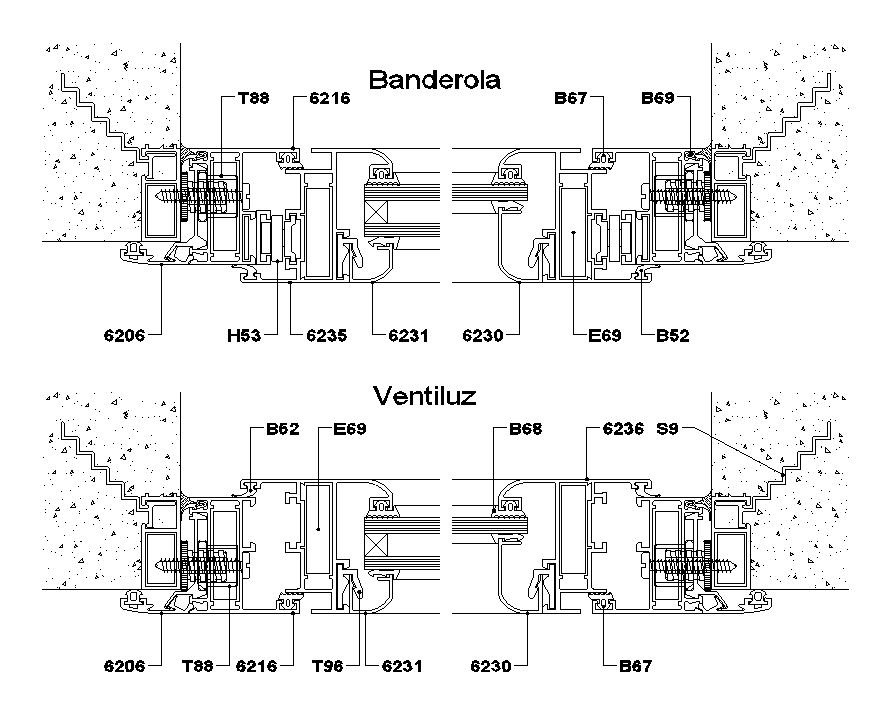 Horizontal cut section of the banner and ventilator detailed CAD drawing file. Download now.