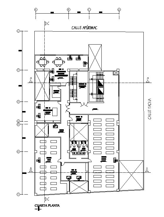Public building forth-floor plan cad drawing is given in this cad file. Download this cad file now.