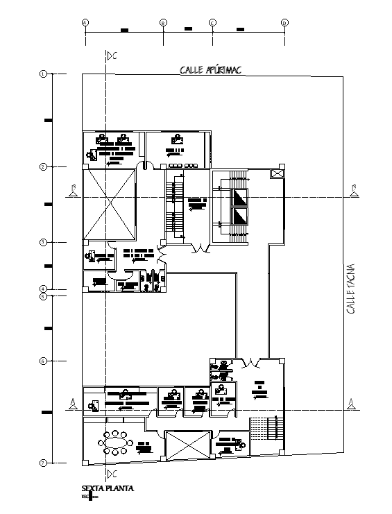 Public building sixth-floor plan cad drawing is given in this cad file. Download this cad file now.
