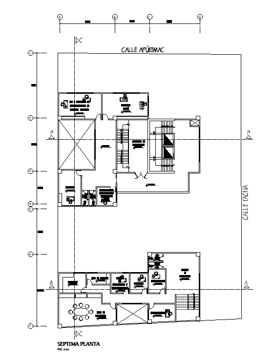 Public building seventh-floor plan cad drawing is given in this cad file. Download this cad file now.