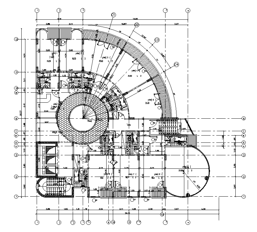 commercial building cad drawing is given in this cad file. There is a 2d floor plan is available. There are also centerline details is available. In this floor plan, there are different offices with attached toilets available. Download this 2d cad file.
