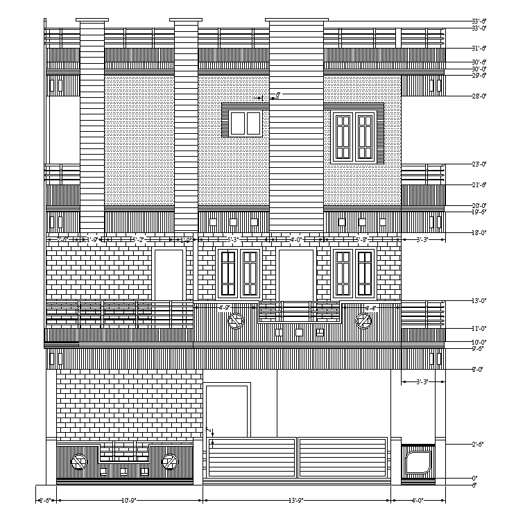 Modern building elevation cad drawing is given in this cad file. There is a 2d front view of the building is available. In this cad drawing, in-ground floor there are shops and other residential floors are available. Download this 2d auto cad file now.
