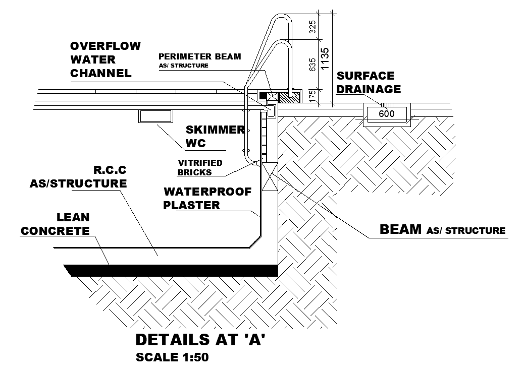 73x50m swimming pool foundation construction detail is given in this AutoCAD drawing model. Beam structure has been given in this drawing. Lean concrete, overflow water channel, surface drainage, skimmer, waterproof plaster, RCC structure, and perimeter beams are mentioned in this. For more details download the AutoCAD drawing file. Thank you for downloading the AutoCAD drawing file and other CAD program files from our website.