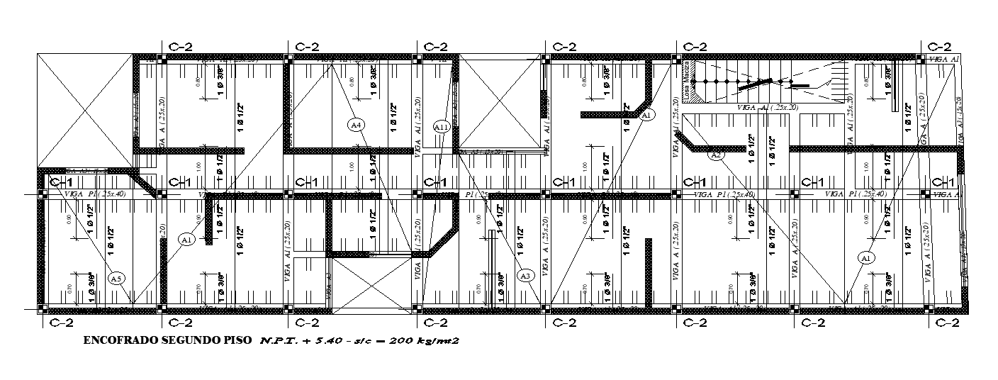 The column layout of the 20x70 second floor house plan is given in this AutoCAD drawing model. Download now.