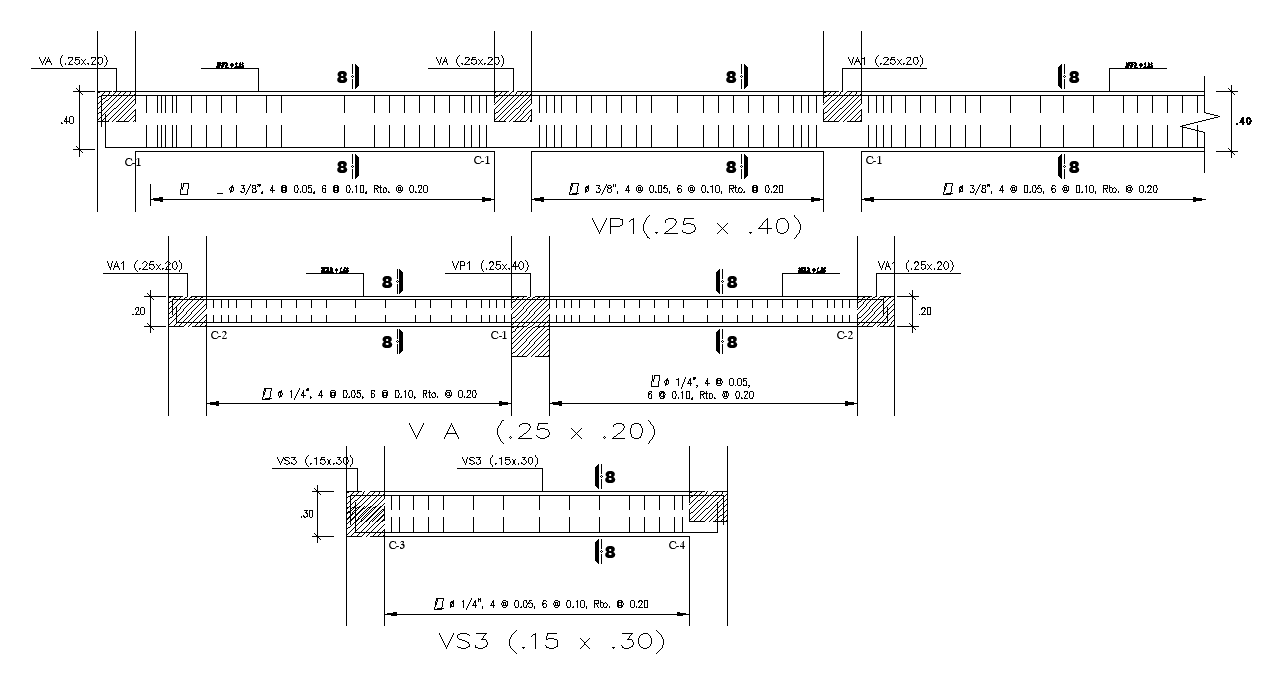 The longitudinal section view of the 0.40x0.25m beam is given in this AutoCAD drawing model. There are 3 different size beam sections that has given. The reinforcement details are specified in this model. For more details download the AutoCAD drawing file. Thank you for downloading the AutoCAD drawing file and other CAD program files from our website.