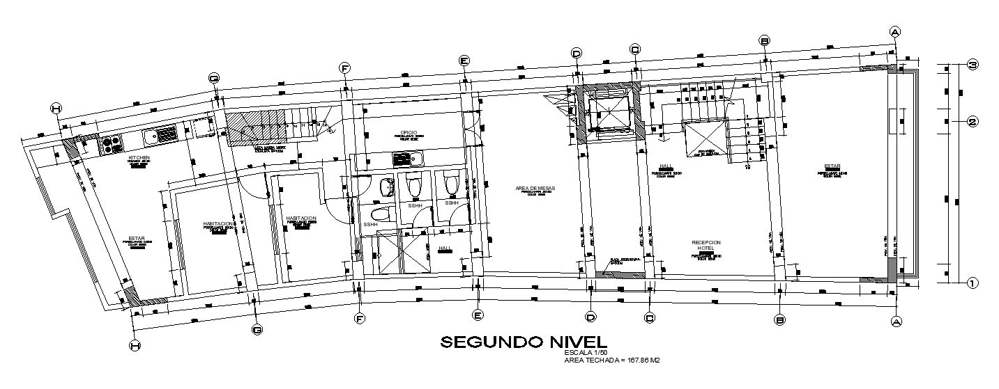 28x8m second floor commercial building is given in this AutoCAD drawing model. This is G+ 8 commercial building. Reception, kitchen, office room, hall, staying room with an attached toilet, female toilet, and male toilet are available. For more details download the AutoCAD drawing file. Thank you for downloading the AutoCAD drawing file and other CAD program files from our website.