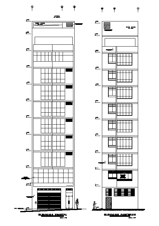 The front elevation of the 28x8m commercial building is given in this AutoCAD drawing model. This is G+ 8 level commercial building. The front and back side elevation views have been given in this model. For more details download the AutoCAD drawing file. Thank you for downloading the AutoCAD drawing file and other CAD program files from our website.