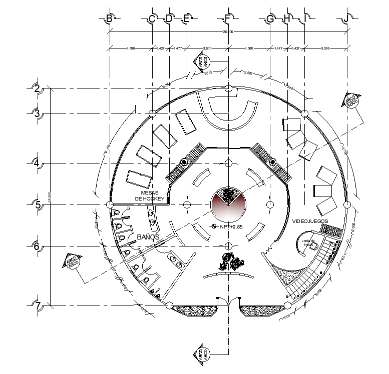 A layout of the 20x18m second floor clubhouse plan is given in this AutoCAD drawing model