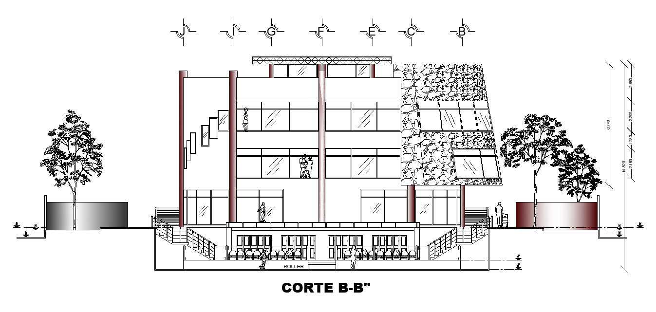 A section BB view of the 20x18m club house building is given in this AutoCAD drawing model.Download now.