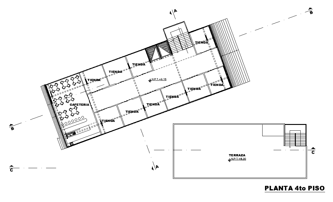 68x32m fourth floor commercial shop plan is given in this AutoCAD model. Download now.