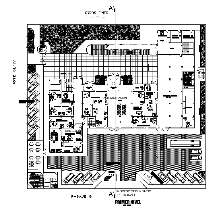 Building first floor plan cad drawing is given in this cad file. Download this 2d cad file.