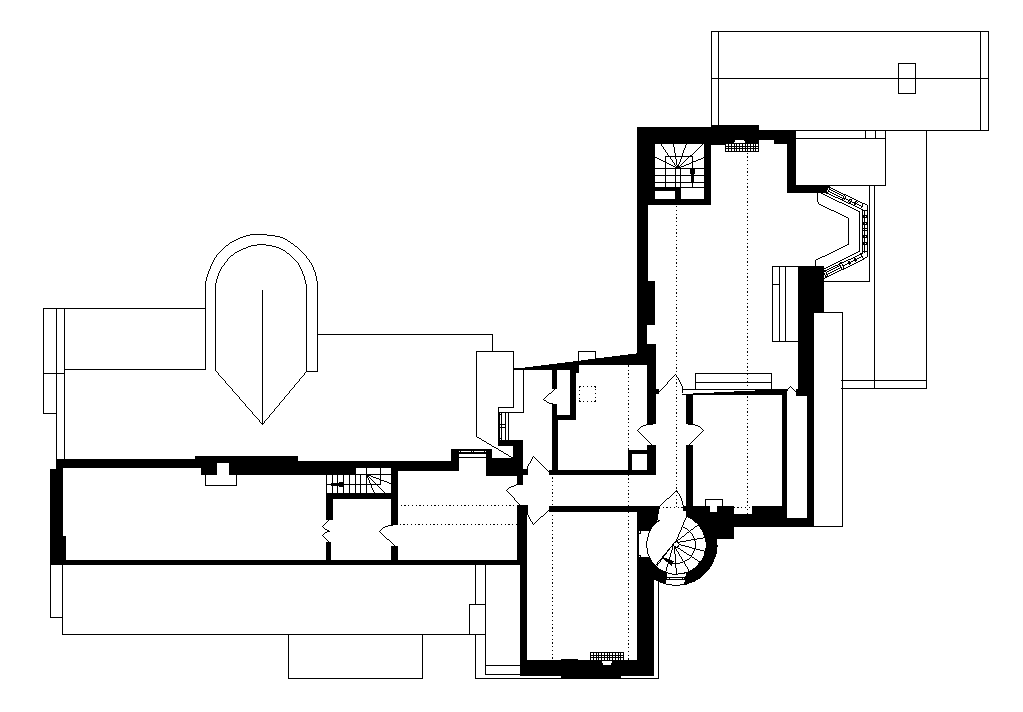 First floor hill house plan is available in this AutoCAD 2D DWG drawing file. Download now.