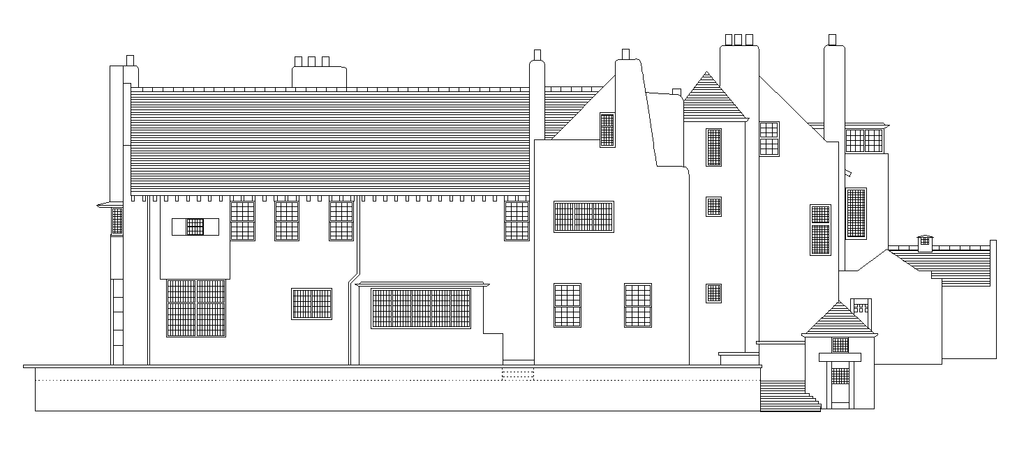 The front elevation view of the hill house building is available in this AutoCAD 2D DWG drawing file. Download now.