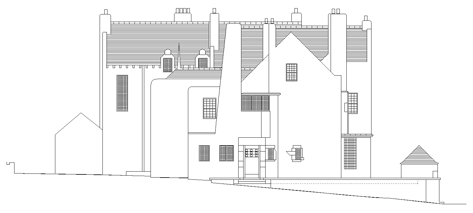 The left side elevation view of the hill house building is available in this AutoCAD 2D DWG drawing file. Download now.
