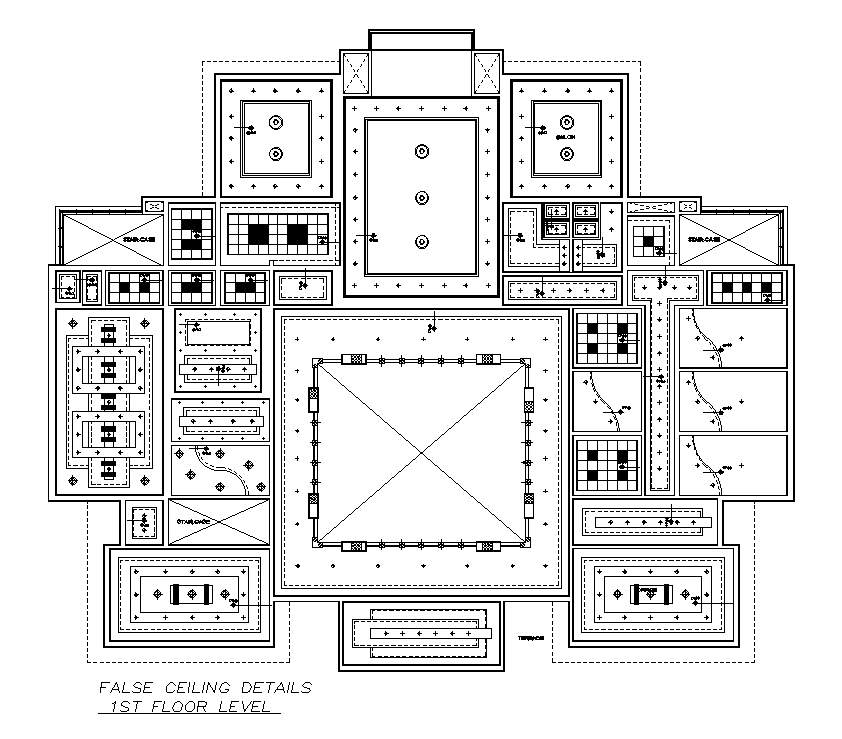 False ceiling detail of the 52x37m first floor office CAD drawing is given in this AutoCAD file.