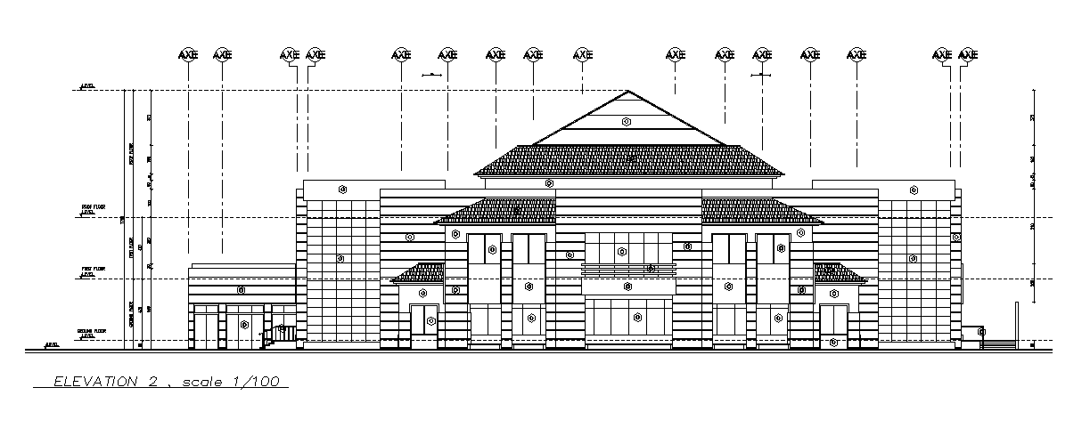 The left side elevation view of the 52x37m commercial building is given in this AutoCAD drawing model. Download now.