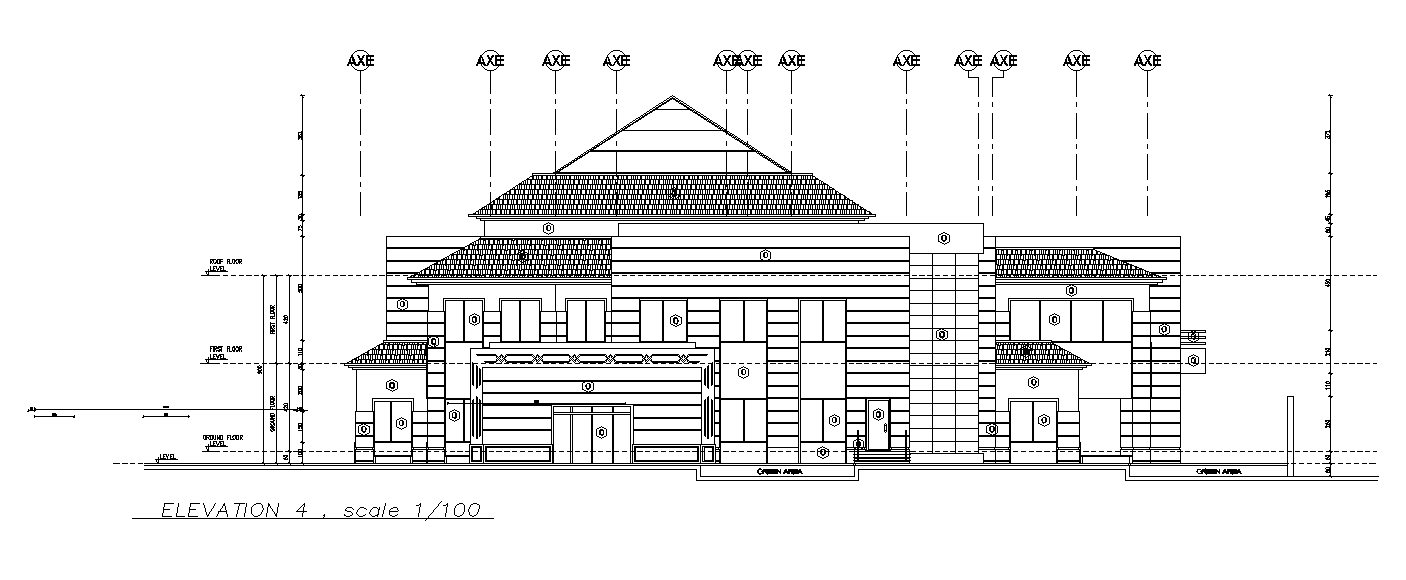 The right side elevation view of the 52x37m commercial building is given in this AutoCAD drawing model. The secretary room, waiting area, ambassador’s rest room, wash area, service lobby, pantry, kitchen, shaft, storage, salon, male toilet, female toilet, staff meeting room, balcony, community hall, Green area, office work area, staircase sheet, electrical room, security, waiting lounge, consular section, storage room, void area, waiting lounge, security room, entry area, entry lobby, waiting room, and office work station are available. For more details download the AutoCAD drawing file. Thank you for downloading the AutoCAD drawing file and other CAD program files from our website.