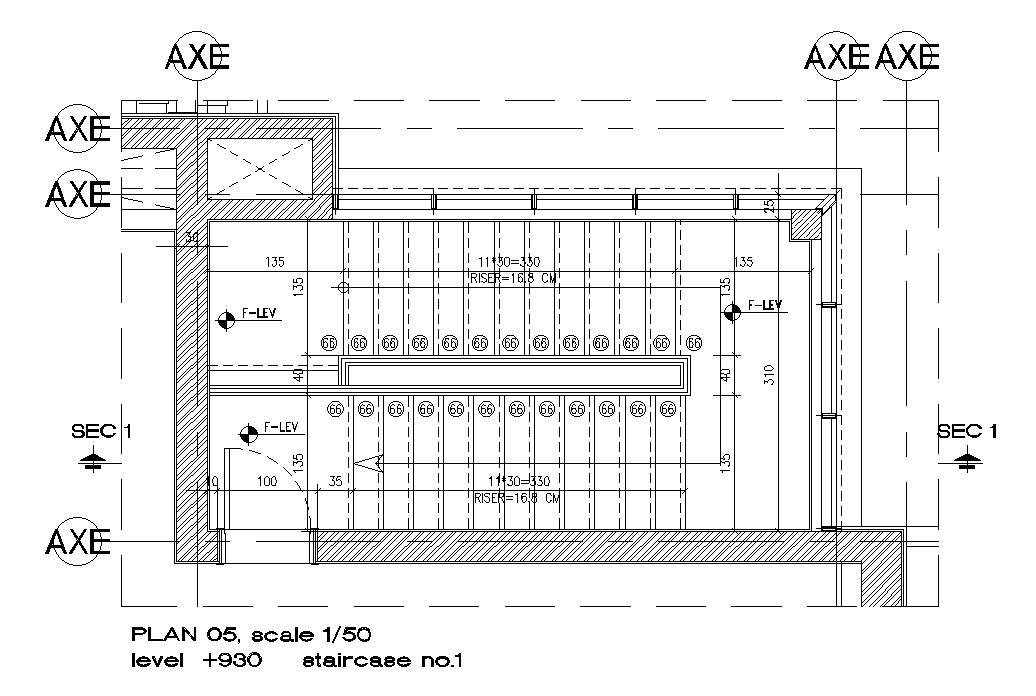 52x37m commercial building of the 600x310cm staircase plan is given in this AutoCAD model. This staircase is given with the +930 level. The total height of the staircase is 14m. The width of the thread is 300mm. The thickness of the riser is 168mm. For more details download the AutoCAD drawing file. Thank you for downloading the AutoCAD drawing file and other CAD program files from our website.