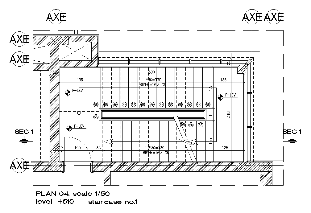600x310cm staircase detail drawing plan is given in this AutoCAD model. This staircase is given with the +510 level. The width of the thread is 300mm. The thickness of the riser is 168mm. For more details download the AutoCAD drawing file. Thank you for downloading the AutoCAD drawing file and other CAD program files from our website.