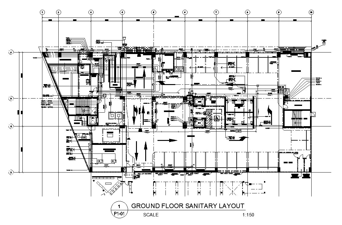 Sanitary layout of the building cad drawing is given in this cad file. There is a 2d plumbing plan is available. In this cad drawing, there is centerline plan is also available. For more 3d or 2d cad drawings visit our website cadbull.com. Download this 2d cad file now.